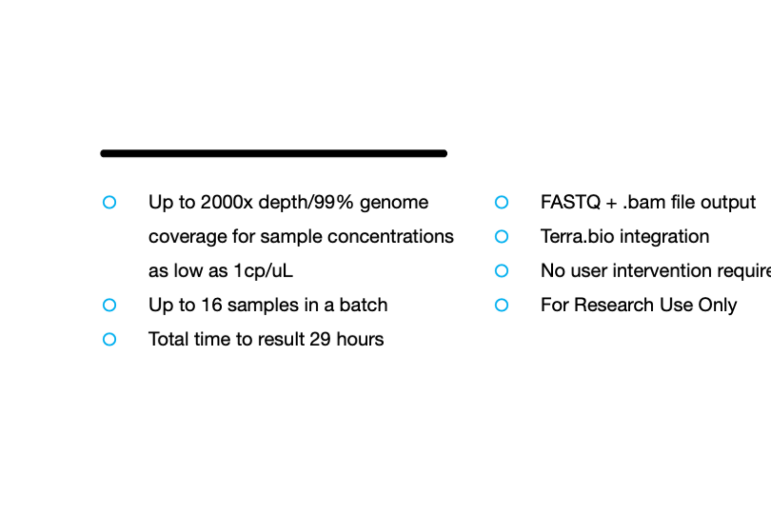 Clear Dx WGS SARS-CoV-2 provides fully automated whole genome sequencing of RNA extracts and assembled FASTA files utilizing long-read sequencing technology.